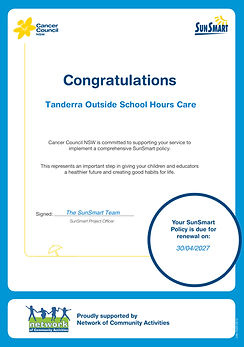 We are proud to be a Sun Smart Centre, having attained our Sun Smart Certificate once again in 2024.